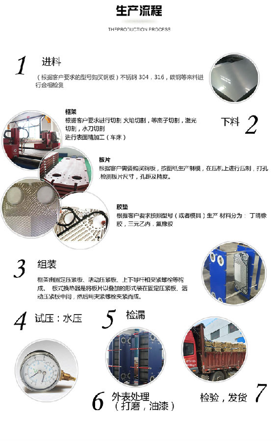 板式換熱器是由一系列具有一定波紋形狀的金屬片疊裝而成的一種新型高效換熱器。各種板片之間形成薄矩形通道,通過板片進(jìn)行熱量交換。板式換熱器是液—液、液—汽進(jìn)行熱交換的理想設(shè)備。它具有換熱效率高、熱損失小、結(jié)構(gòu)緊湊輕巧、占地面積小、安裝清洗方便、應(yīng)用廣泛、使用壽命長等特點。在相同壓力損失情況下,占地面積為管式換熱器的三分之一,熱回收率可高達(dá)90%以上。